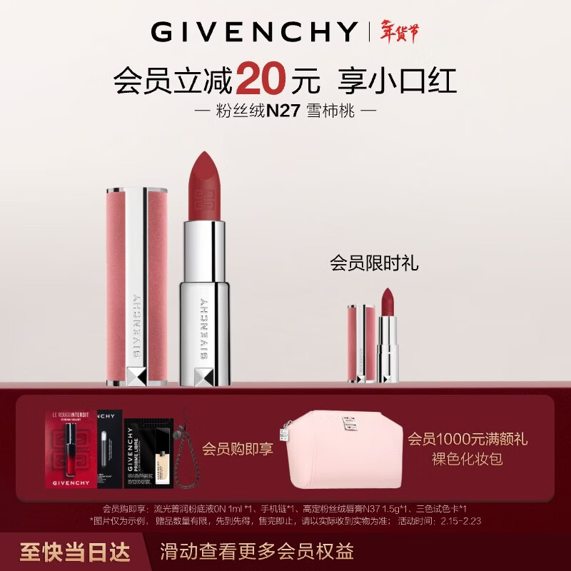 纪梵希(Givenchy)【38抢先购】粉丝绒N27豆沙色口红 38女神节礼盒生日礼物女朋友