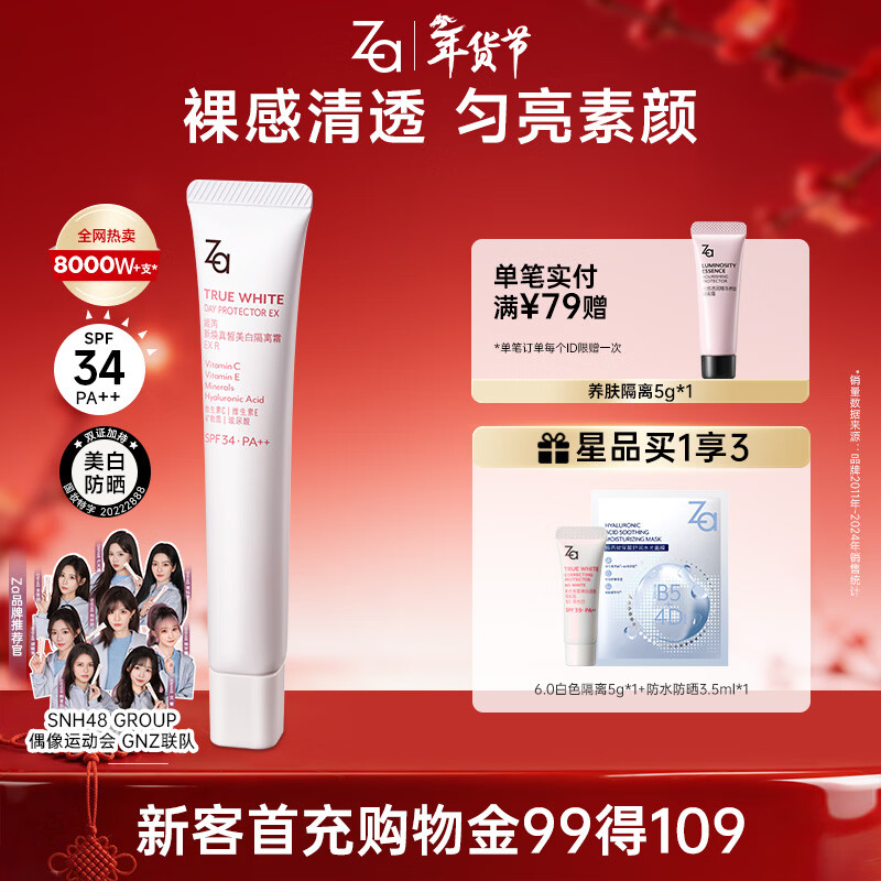 姬芮(ZA)白色懒人素颜霜美白隔离霜防晒遮瑕霜妆前乳35g SPF34新年礼物