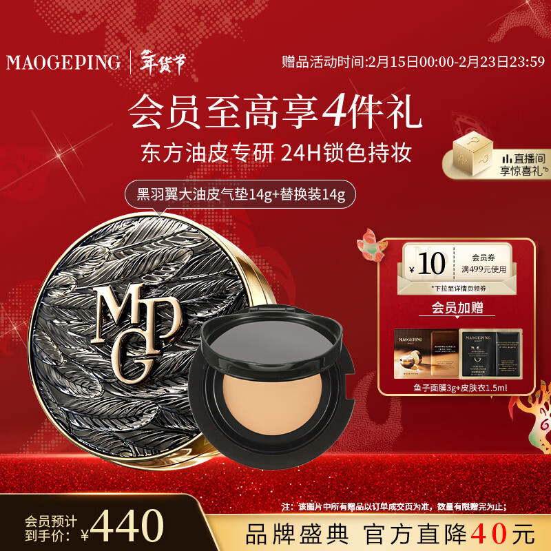 毛戈平【陈丽君同款】黑羽翼气垫701套装白皙14g情人节礼物送女友