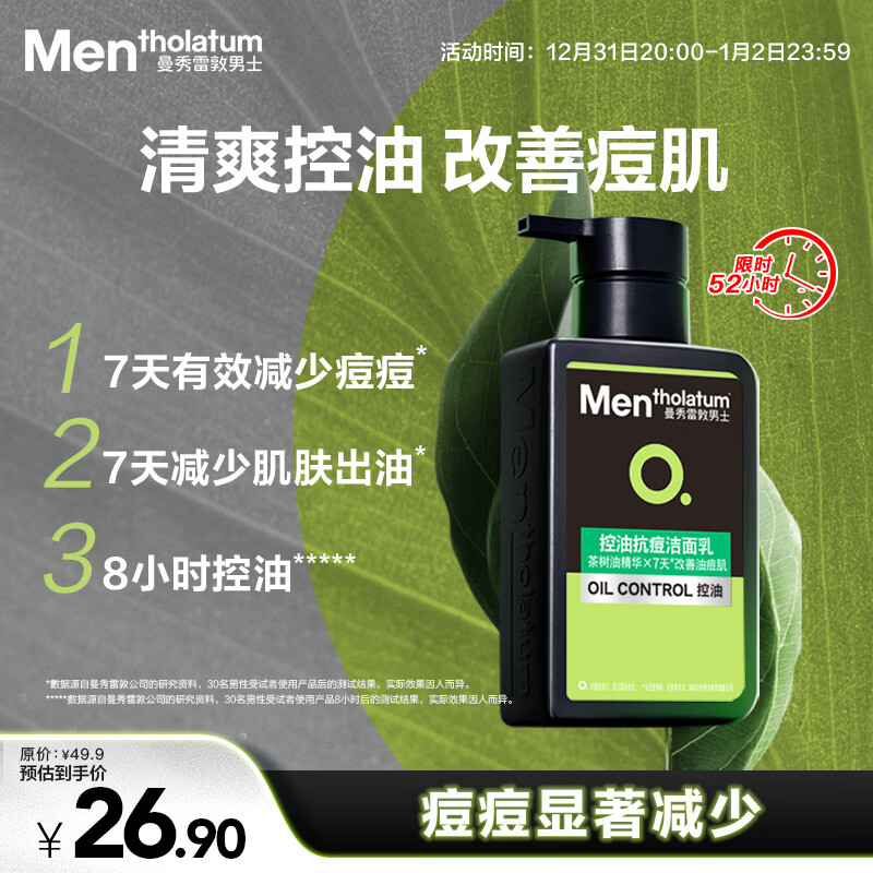 曼秀雷敦男士控油洗面奶150ml去油去黑头控油抗痘洁面礼物男
