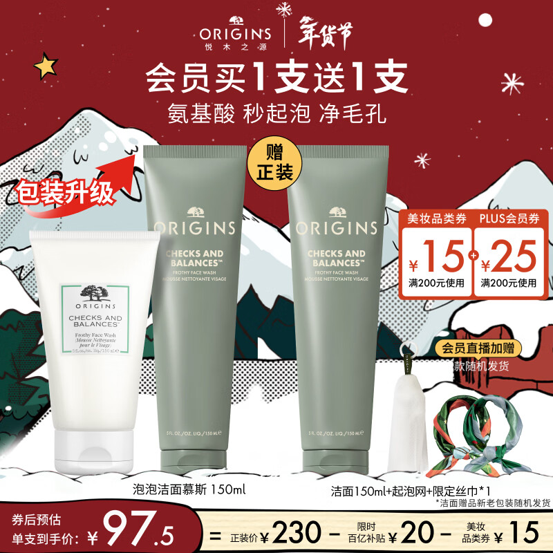 悦木之源(Origins)白胖子洗面奶男士氨基酸洁面慕斯女士控油清洁毛孔卸妆护肤生日礼