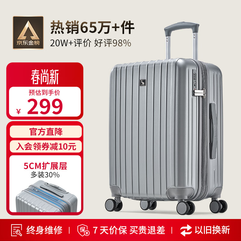 爱华仕行李箱20英寸登机箱男大容量拉杆箱出差旅行箱女密码箱皮箱磨砂灰