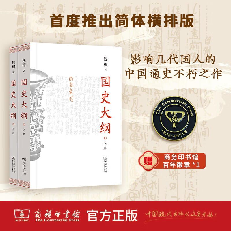 现货《国史大纲》简体版(上下册) 简体横排 钱穆 著 商务印书馆 官方旗舰店 顺丰包邮 少量现货 简体横排+百年徽章纪念版 现货 简体横排版