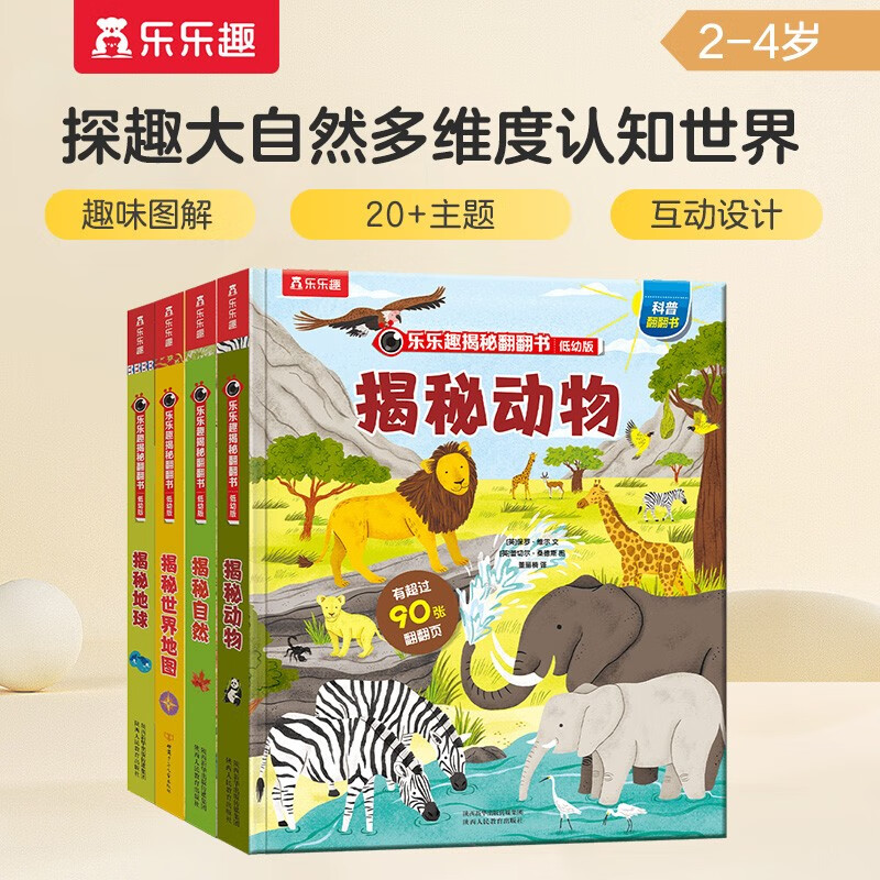 揭秘动物/自然/地球/世界地图(2-4岁揭秘低幼版科普翻翻书共4册)乐乐趣童书幼儿启蒙立体书 儿童年货节送礼