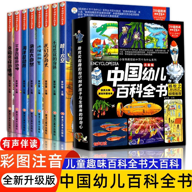中国幼儿百科全书大百科注音版全套8册拼音读物正版图书 疯狂的十万个为什么少年儿童趣味百科全书漫画版 少儿科普类绘本故事书 小学生一二年级课外阅读必读书籍科普百科常识1000问儿童书