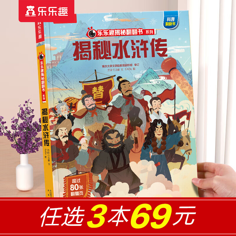 【69元选3本】揭秘翻翻书汽车交通工具绘本儿童3d立体书 3-6-7-10岁科普读物百科全书 乐乐趣揭秘系列全套童书籍机关书 揭秘水浒传-点读版
