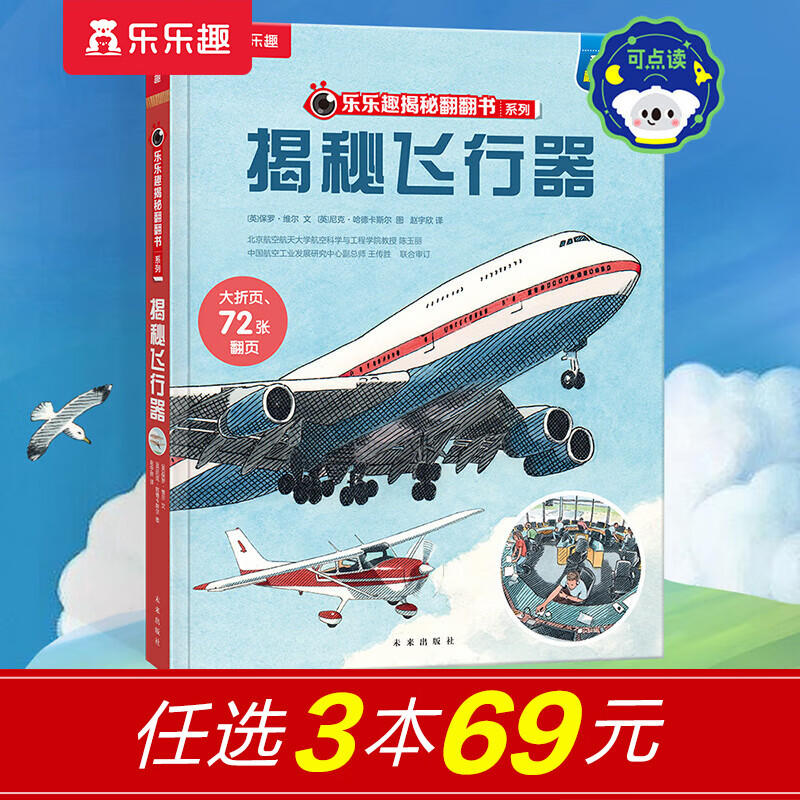 【69元选3本】揭秘翻翻书汽车交通工具绘本儿童3d立体书 3-6-7-10岁科普读物百科全书 乐乐趣揭秘系列全套童书籍机关书 揭秘飞行器-点读版