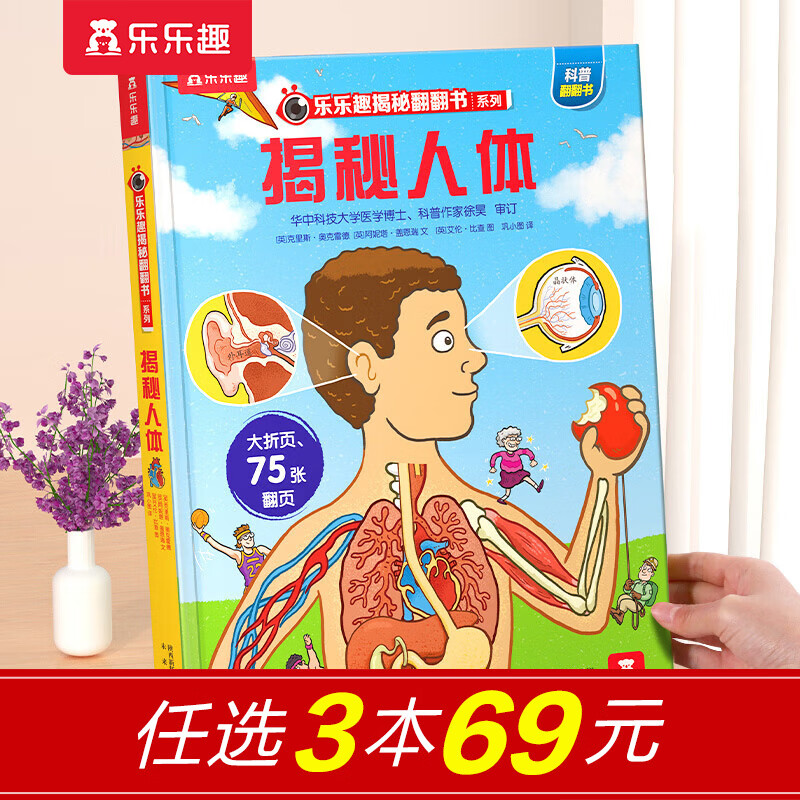 【69元选3本】揭秘翻翻书汽车交通工具绘本儿童3d立体书 3-6-7-10岁科普读物百科全书 乐乐趣揭秘系列全套童书籍机关书 揭秘人体-点读版