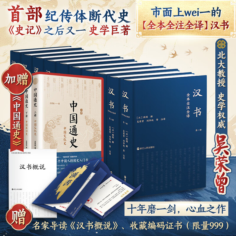 汉书全本全注全译(全十卷)10册 赠中国通史 600万字16开 大开本 汉班固著 浙江人民出版社