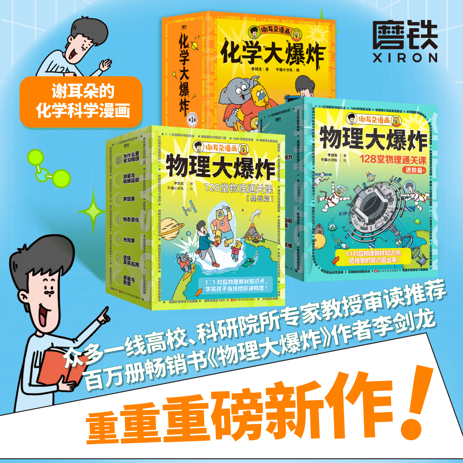 【刘慈欣推荐 谢耳朵漫画】物理大爆炸 128堂物理通关课 基础篇7册+进阶篇6册 化学大爆炸6册 全19册 动物大爆炸5册化学大爆炸 李剑龙著 儿童物理化学知识科普系列 物理大爆炸+化学大爆炸【全19