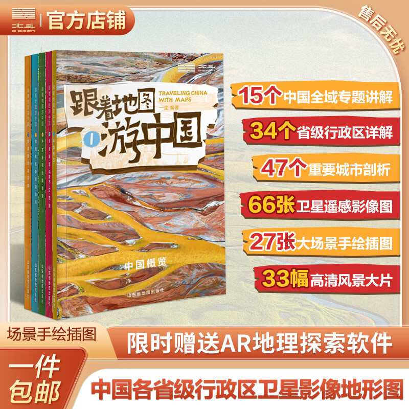 【北斗官方】跟着地图游中国(全5册)与新版教材同步 地理百科 旅游科普 省级旅游介绍 旅游地图 地理知识大百科 附赠VR小程序 学生课外阅读书