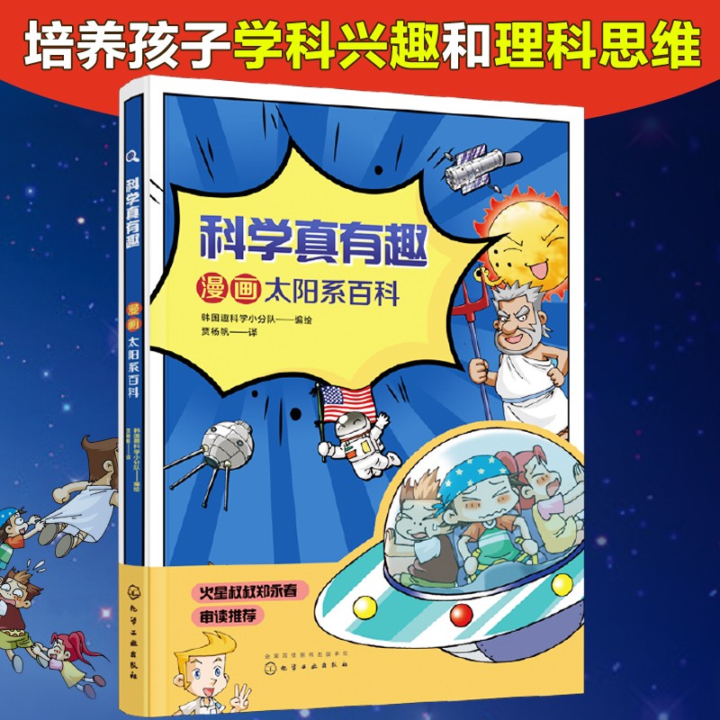 6-14岁 漫画百科•科学真有趣:太阳系(14个科学故事+24篇科学笔记+超过60个核心知识点)跟随探险队少年乘坐飞船遨游太阳系、揭秘恒星和星座。