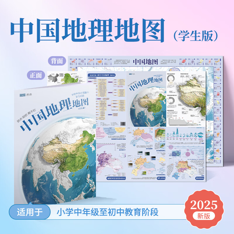 【北斗官方】2025新版中国地图、世界地理地图学生版 小学初高中专用版 地理学习思维导图 同步课堂重点 初中地理知识点 便携关门折叠地图 折贴平铺两用 2张 4面知识内容 赠AR软件 中国地图