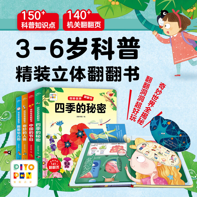 【点读版】奇妙世界翻翻书全8册一二辑精装硬壳撕不烂2-4-6岁宝宝科普认知幼儿园早教儿童纸板立体书可爱动物海洋世界运动会交通工具中国节日 奇妙世界翻翻书(第2辑):全4册(点读版)