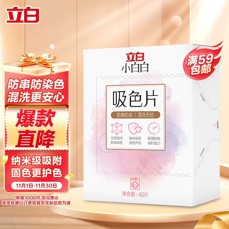 立白小白白防串色吸色片40片装 纳米吸附 衣物混洗无忧 色母片 洗衣片