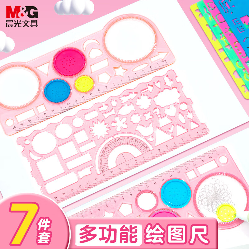 晨光(M&G)文具粉色万花尺组合7件套手抄报尺子神器模版镂空小学生文具 益智多功能绘图ARL960ABC1