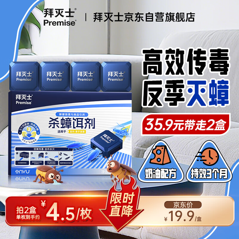 拜灭士热门商品蟑螂药蟑螂屋杀蟑饵剂室内全窝端大小蟑螂诱饵盒4枚/盒
