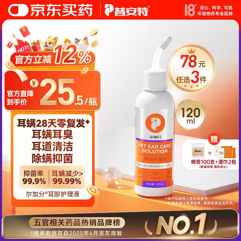 普安特宠物猫咪洗耳液耳螨狗狗滴耳液猫耳朵清洁耳垢臭痒漂护理液尔加分