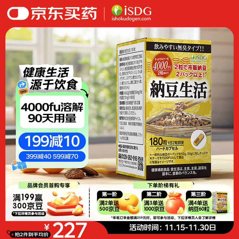 ISDG纳豆激酶胶囊4000fu180粒 疏通血管高降血脂血压中老年人 90天量