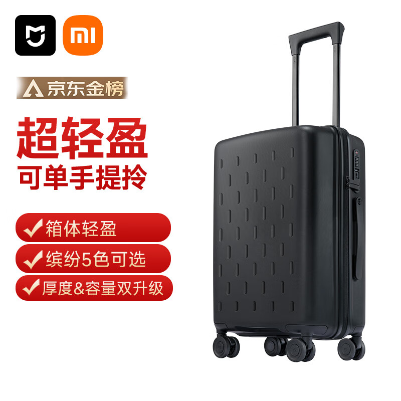 米家小米行李箱20英寸拉杆箱可登机箱万向轮旅行箱男女小型密码箱黑色