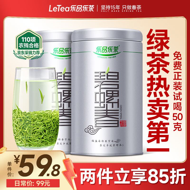 乐品乐茶特级明前嫩芽碧螺春绿茶叶2025新茶春茶礼盒装自己喝送礼品袋250g
