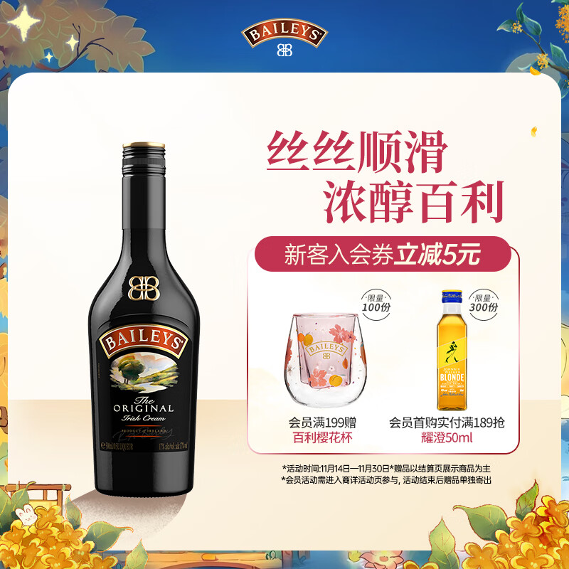 百利(Baileys)甜 奶油原味奶酒 力娇酒利口酒500ml 爱尔兰 调酒