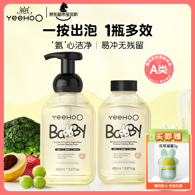 英氏奶瓶清洗剂洗奶嘴果蔬餐玩具婴儿童洗洁精泡沫柠檬酸除垢450ml*2