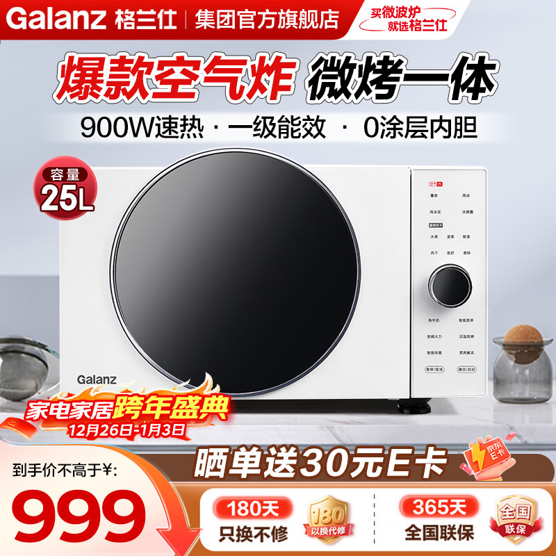 格兰仕(Galanz)微波炉25升900W变频空气炸烤箱一体机0涂层不锈钢内胆一级能效微烤炸一体机 DR