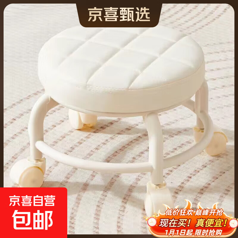 【京喜甄选】椅子万向轮美缝凳子带轮旋转擦地矮凳美甲修脚凳滑轮 儿童凳-米白色款