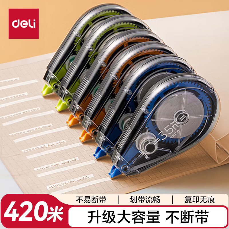 得力(deli)全网低价420米酷黑修正带超长涂改带加大容量开学文具顺滑改正带12个装/VR190修正带