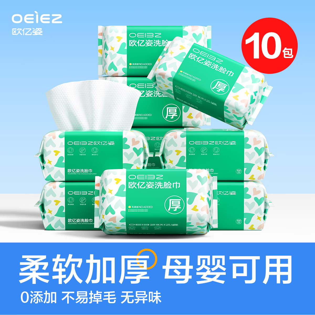 欧亿姿(oeiez) 洗脸巾一次性毛巾特厚洗面巾干湿两用美容巾擦脸纸抽取式绵柔巾 厚款 100片 *10包【加大加厚】囤货