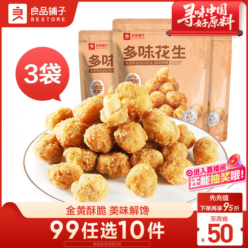 良品铺子 多味花生148g*3袋 休闲零食 干果坚果炒货年货小吃