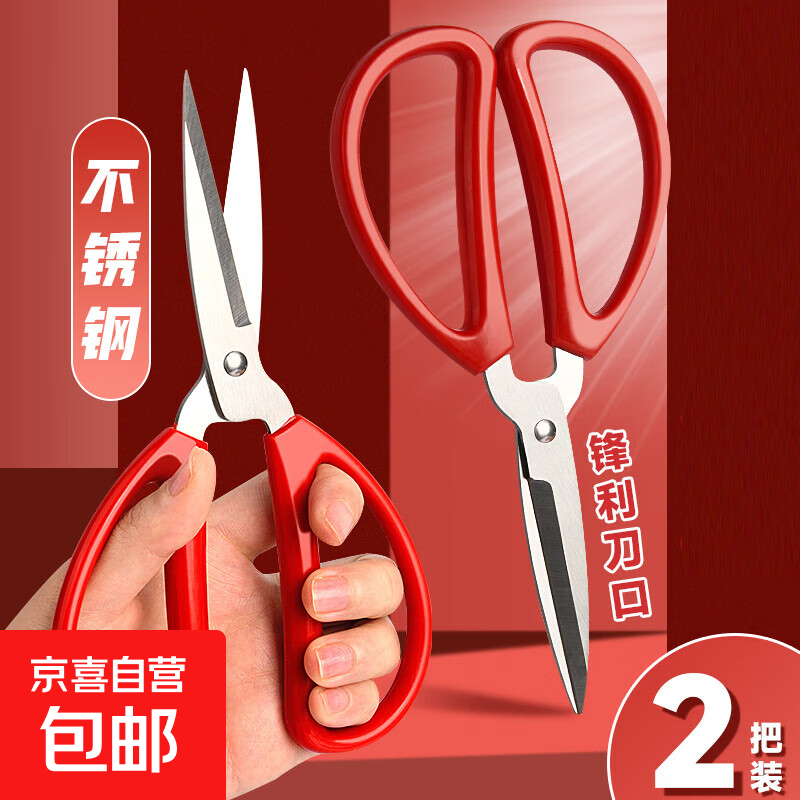 剪子家用不锈钢家用剪结婚剪剪刀强力剪办公剪裁缝剪文具剪手工剪 中国红【大号】2把