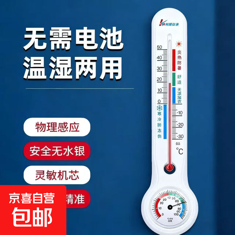 室内温湿度计家用高精度婴儿房壁挂式温度表客厅大棚养殖室温干湿两用温度计机械式无需电池 KH366温湿度计