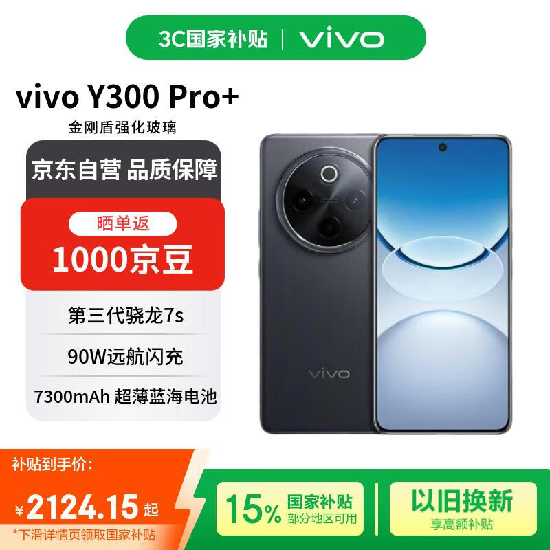 vivo Y300 Pro+ 12+512 简黑 7300mAh超薄蓝海电池 第三代骁龙7s 金刚磐石架构【赠话费券】国家补贴