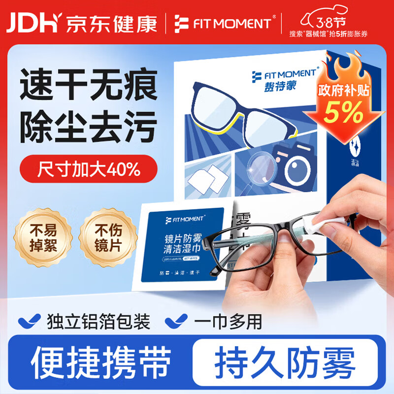 FIT MOMENT眼镜清洁湿巾防雾眼镜湿巾纸不伤镜片擦手机镜头速干不留痕100片
