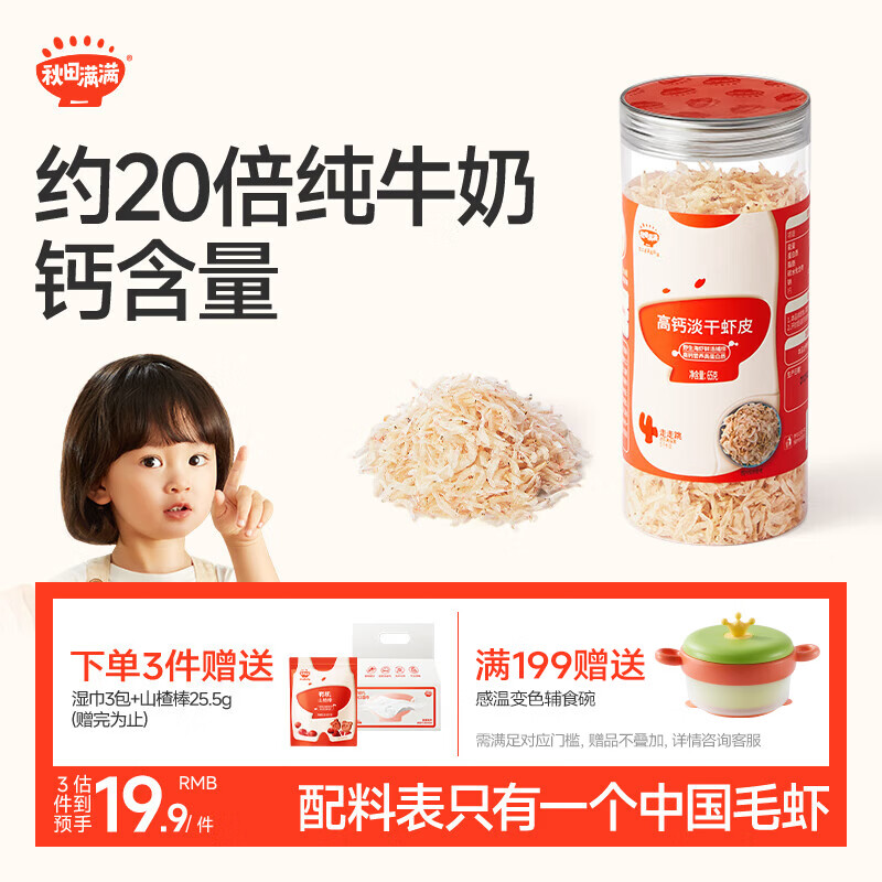 秋田满满高钙淡干虾皮65g儿童无添加食盐年货海产干货虾米享宝宝婴儿食谱