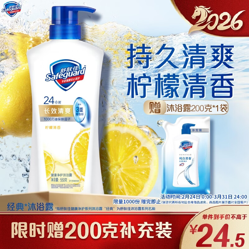 舒肤佳健康净护沐浴露柠檬香550g 洗澡沐浴乳液男女士通用 新旧包装随机