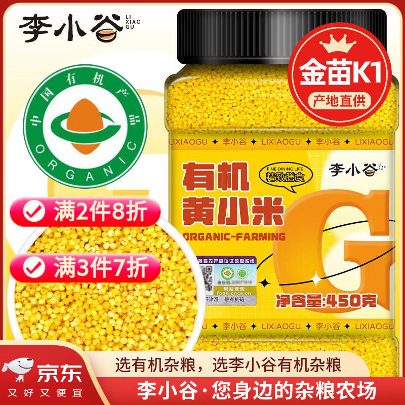 李小谷 有机黄小米450克罐装(新米金苗K1黄小米粥料东北小米五谷杂粮米)