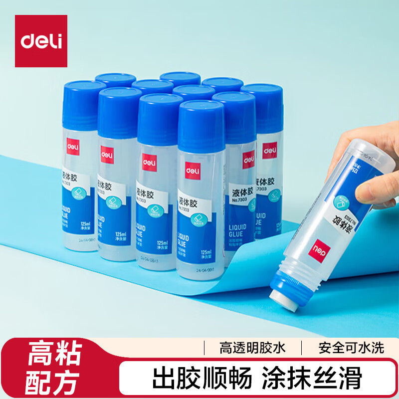 得力(deli)125ml高透明胶水 可水洗高粘液体胶 手工DIY学生文具开学必备学习用品12支装办公用品7303