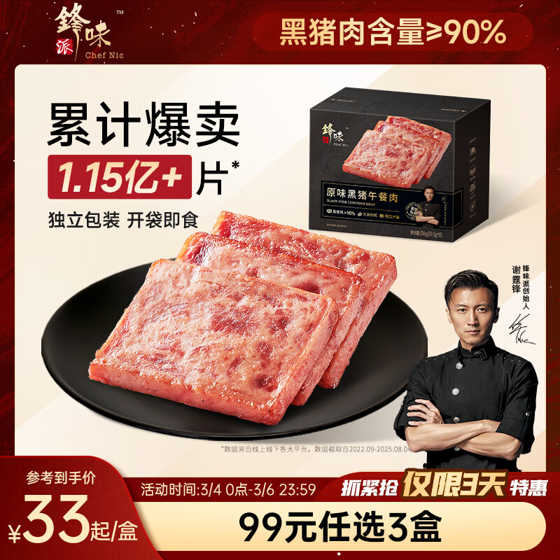 锋味派黑猪午餐肉原味316g/8片独立包装儿童早餐方便速食火腿肠香肠零食