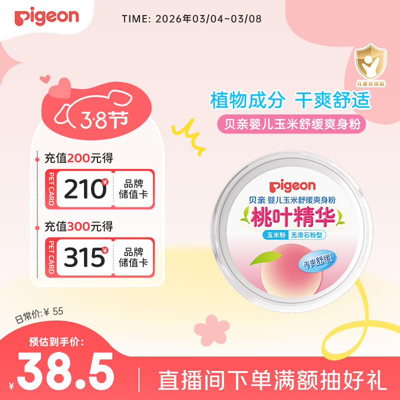 贝亲(Pigeon)婴儿玉米舒缓爽身粉 桃叶精华 50g HA23