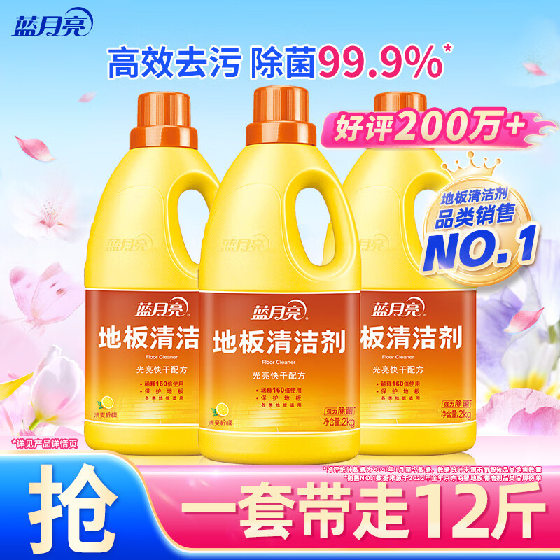 蓝月亮地板清洗剂 2kg/瓶*3 柠檬香 木地板瓷砖 地板清洁剂 拖地清洁剂