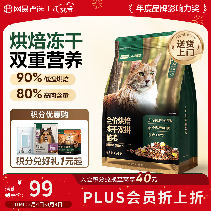 网易严选全价烘焙冻干双拼猫粮 成幼猫主粮生骨鲜鸡肉美毛低敏护肠胃1.8kg