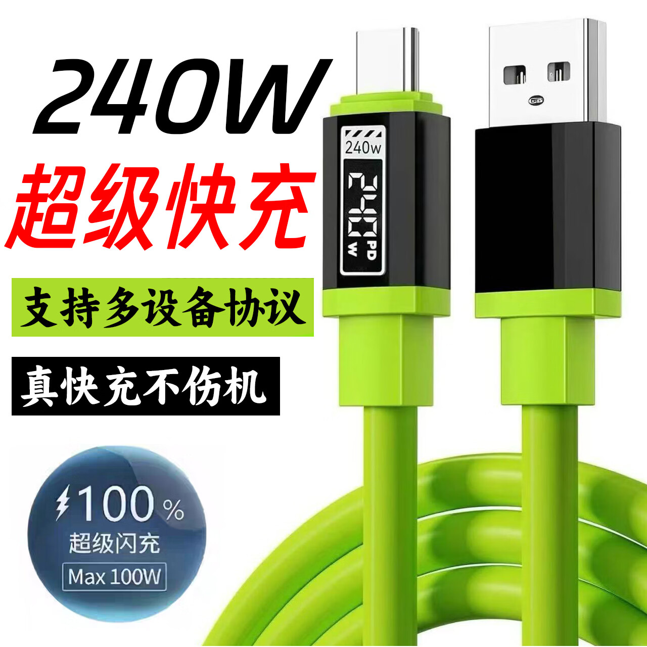 艾胜者120W超级快充Type-c编织数据线10A闪充手机加长充电线车载usb通用大电流带头适用华为荣耀vivo小米 【单条装】240W超级闪充数据线 1米