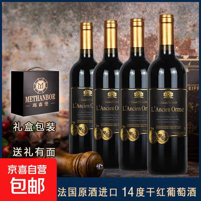 奜拉德酒庄14度干红葡萄酒【法国原酒进口】750ml 莱森奥干红4支礼盒装+海马刀