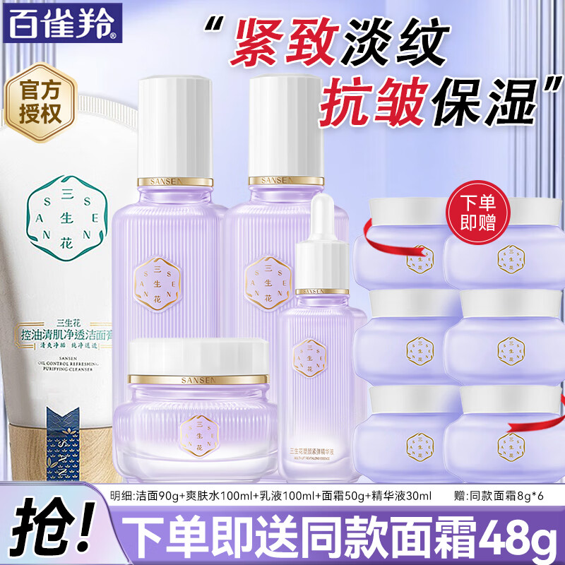 百雀羚(PECHOIN)三生花套装女 淡纹保湿紧致抗皱水乳霜30-40岁护肤品妈妈礼物秋冬 【礼盒4件套】洁面+水乳霜+精华