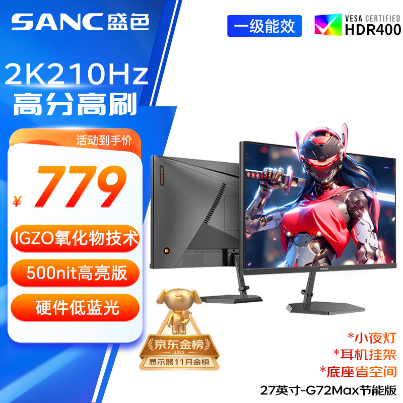 SANC盛色27英寸2K200Hz电竞显示器IPS 10Bit硬件低蓝光IGZO氧化物技术 500nit高亮屏幕 G72Max节能版