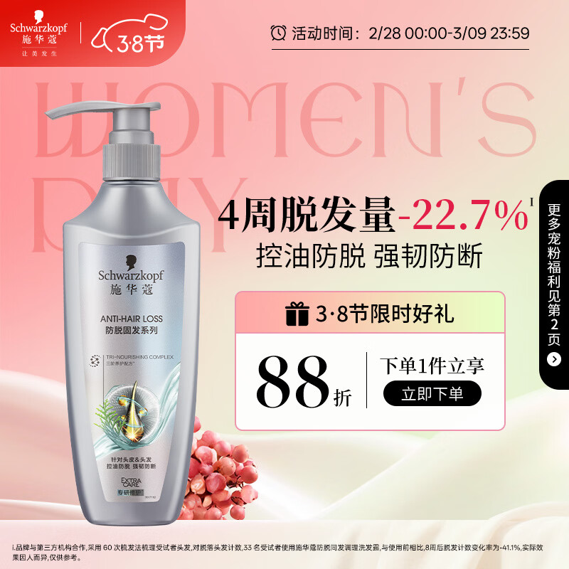 施华蔻(Schwarzkopf)防脱固发洗发露400ml 控油防脱发 固发防断发掉发女士新老包装