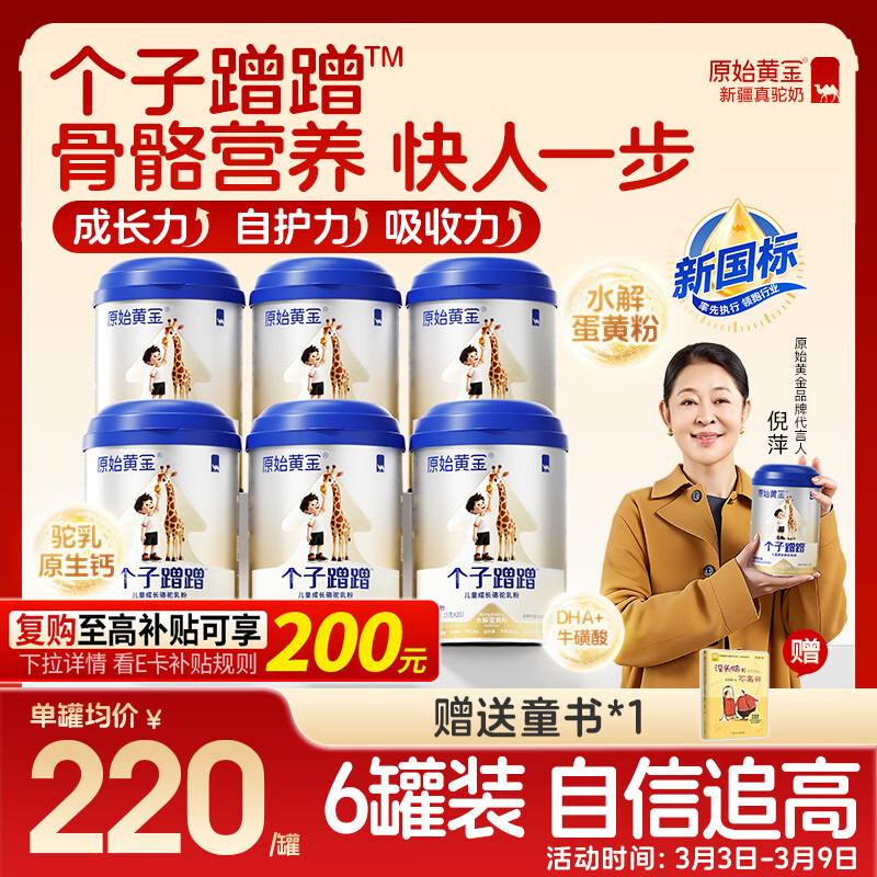 原始黄金个子蹭蹭儿童成长奶粉3-15岁高钙学生青少年新疆骆驼奶粉300g*6罐